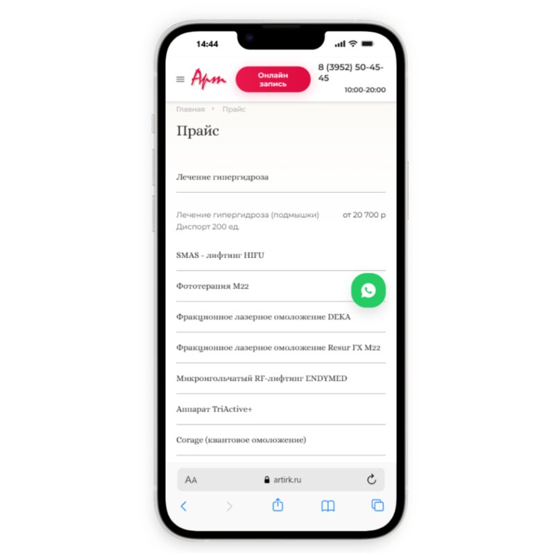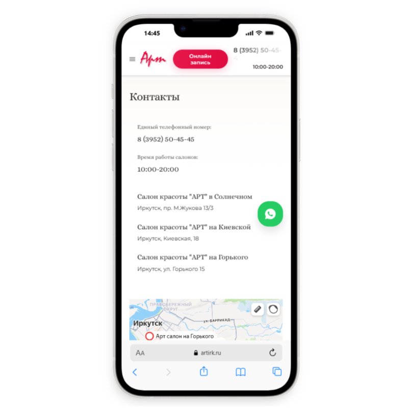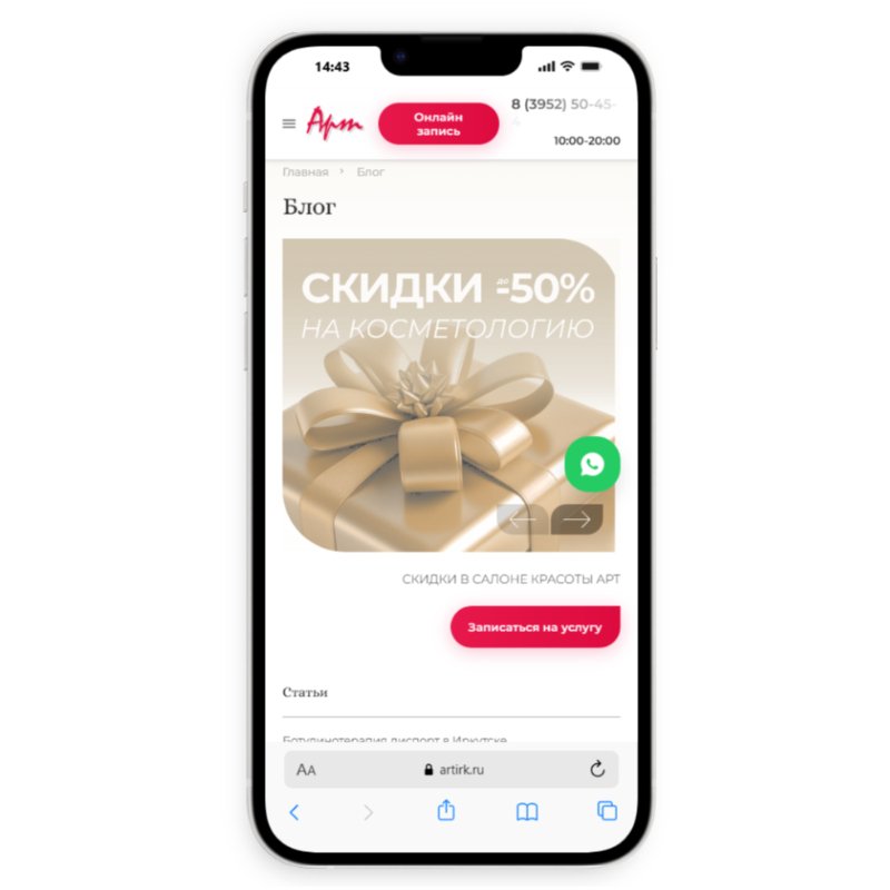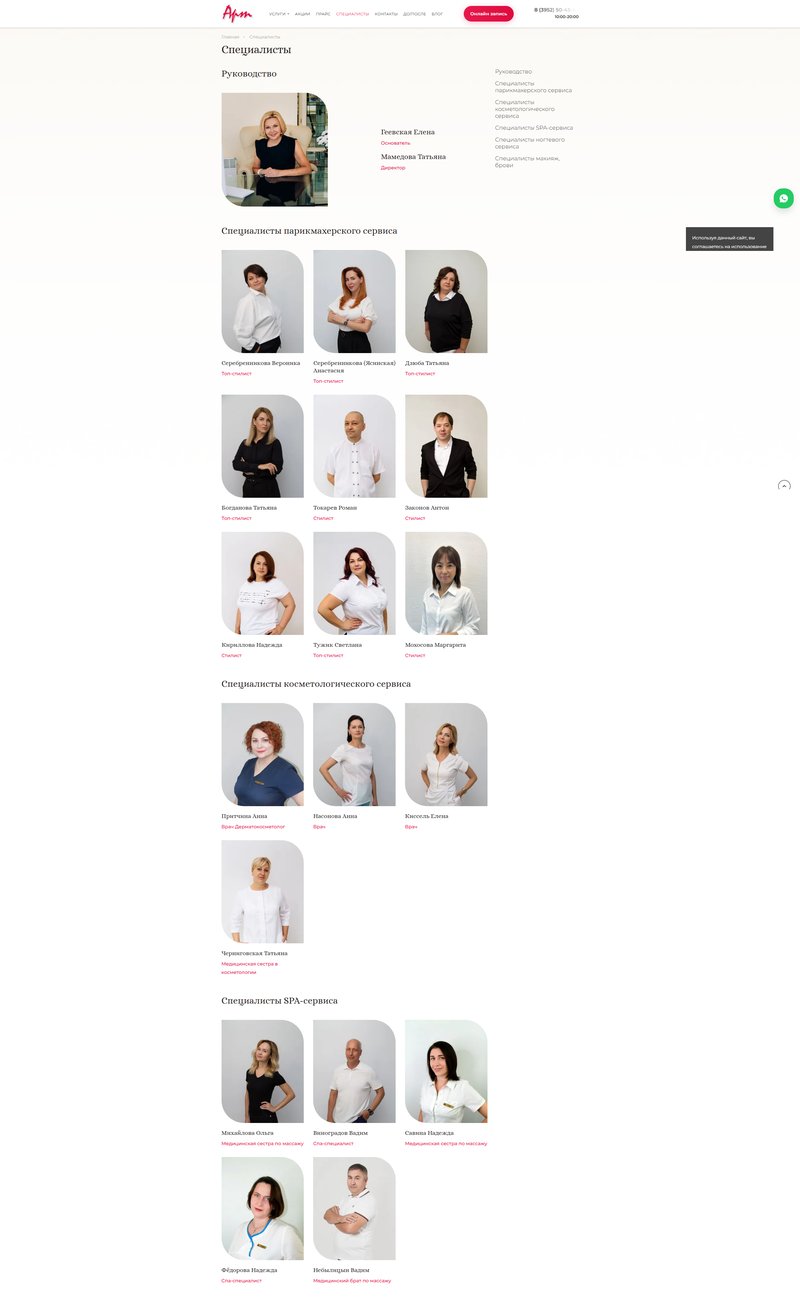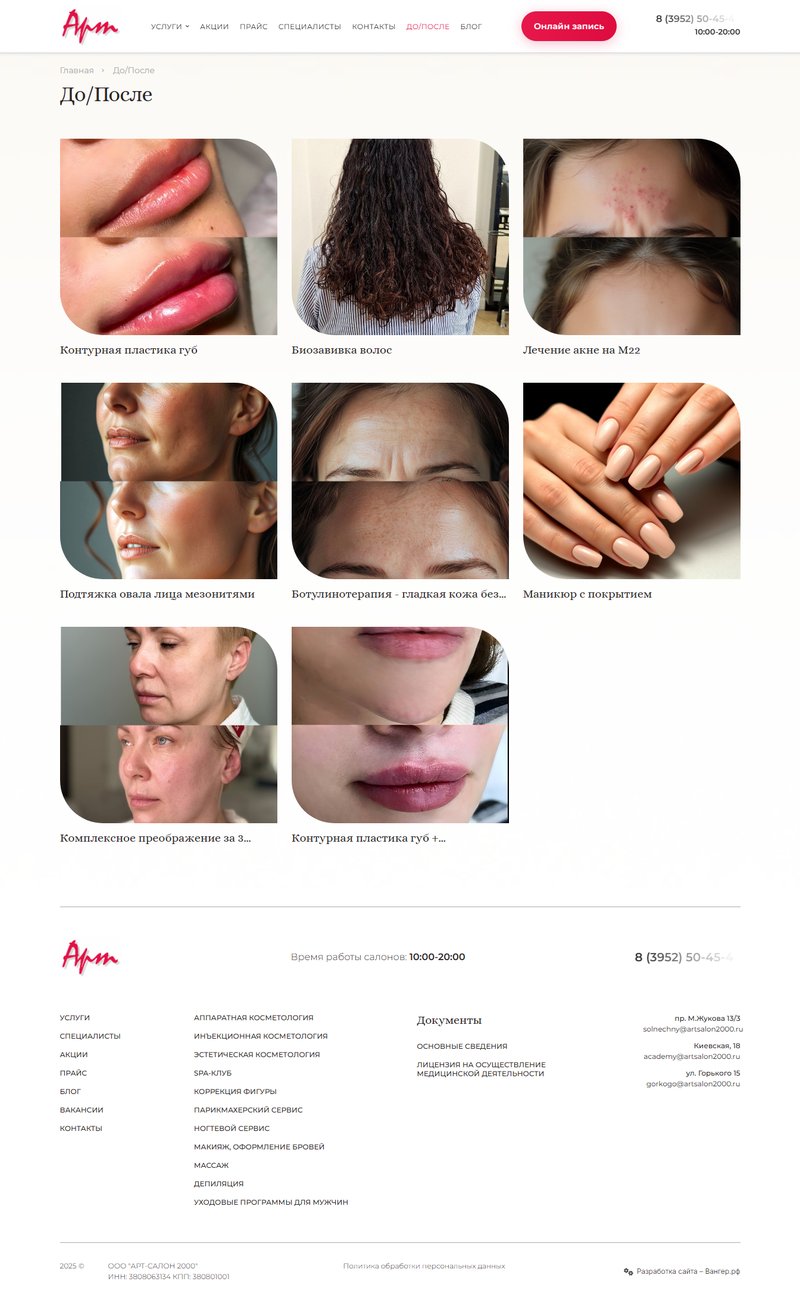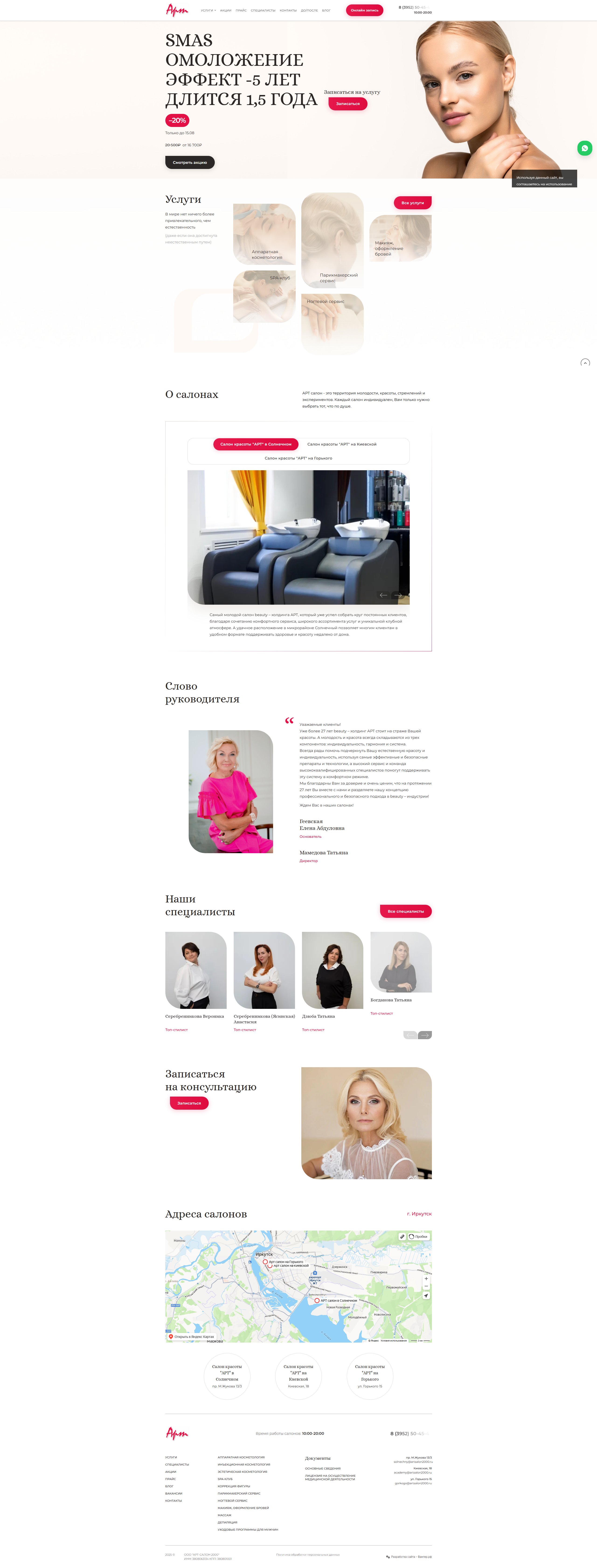 Основными задачами стали разработка современного дизайна и создание удобной административной системы для самостоятельного управления контентом сайта салона красоты “Арт”.