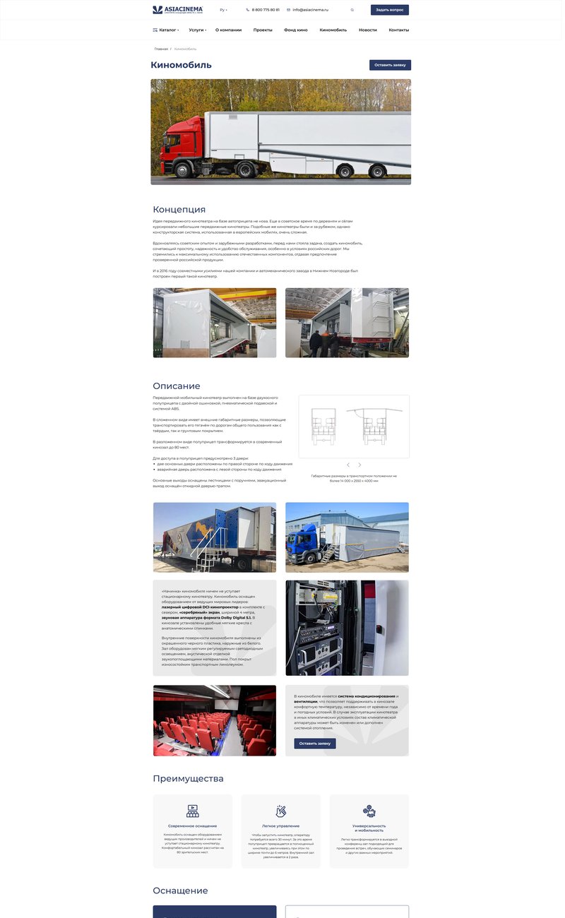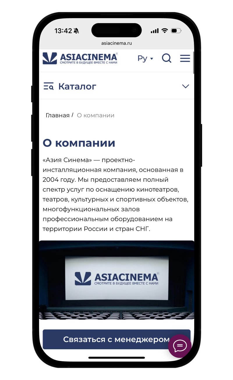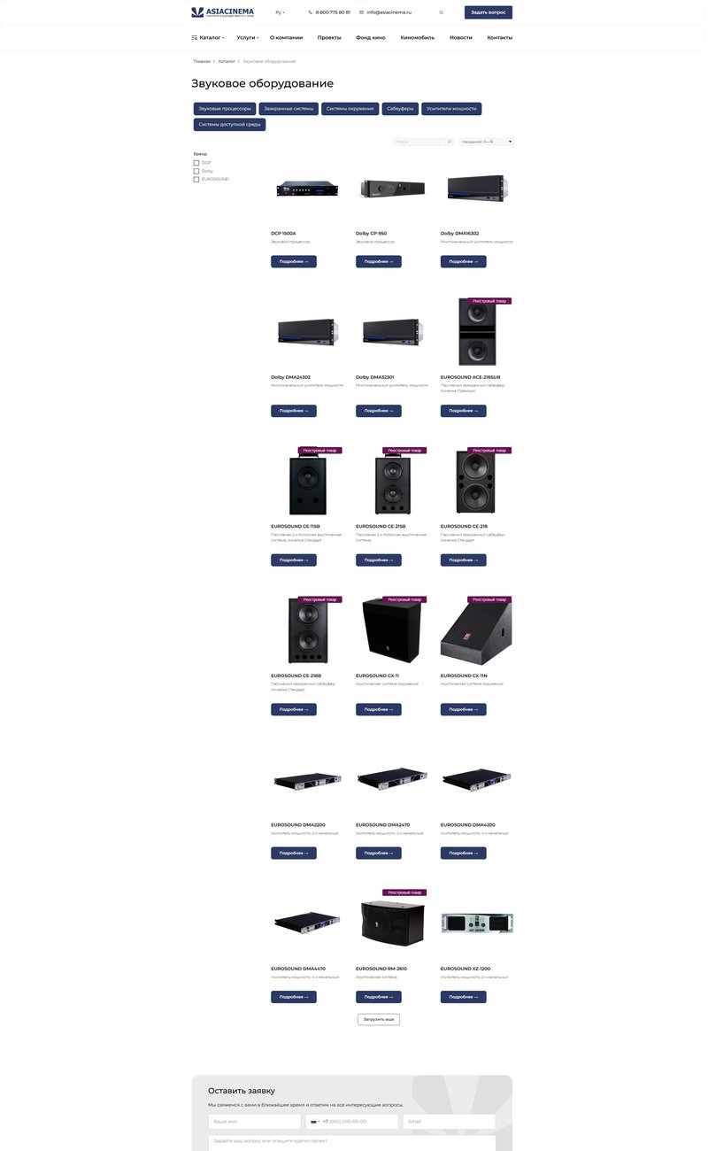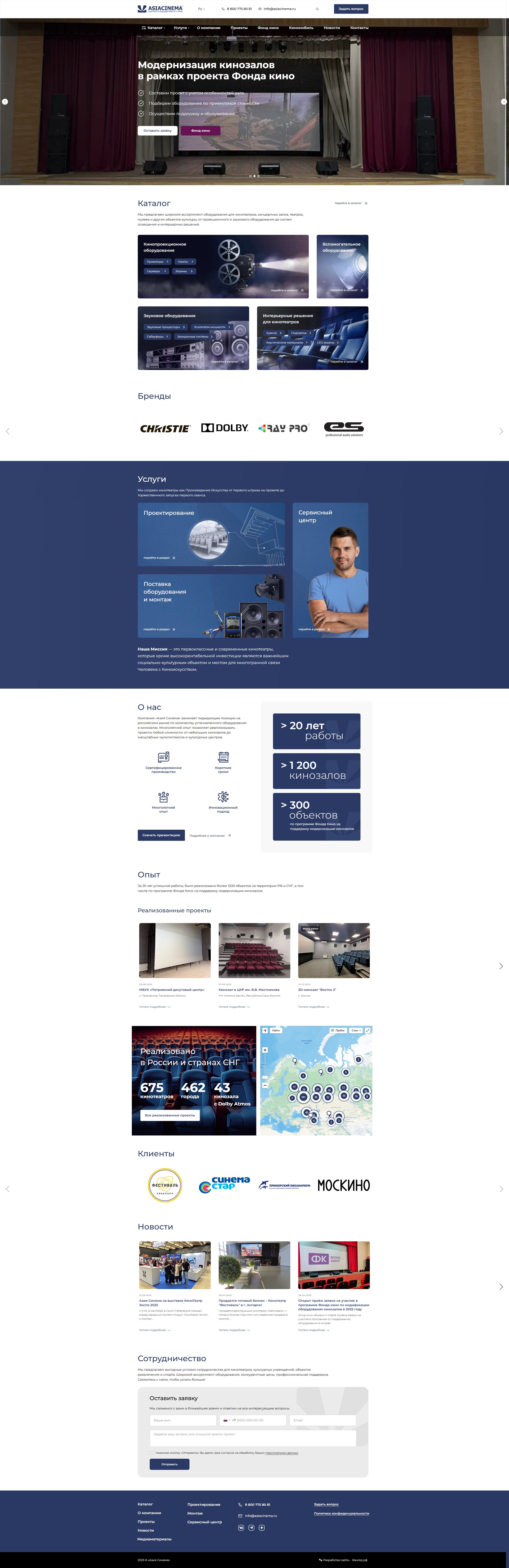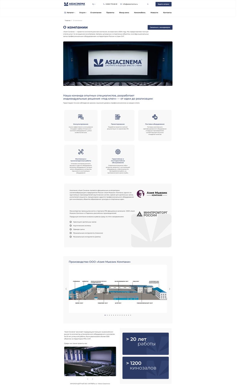 Компания «Азия Синема», ведущий поставщик профессионального оборудования для кинотеатров и культурных объектов в России и странах СНГ, обратилась к нам для срочного обновления устаревшего сайта.