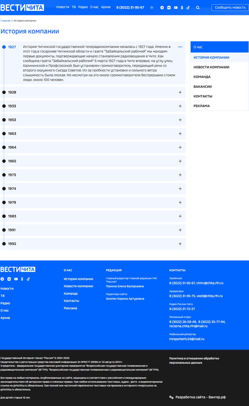 Современный сайт для филиала Всероссийской государственной телевизионной и радиовещательной компании.