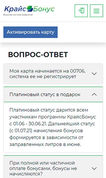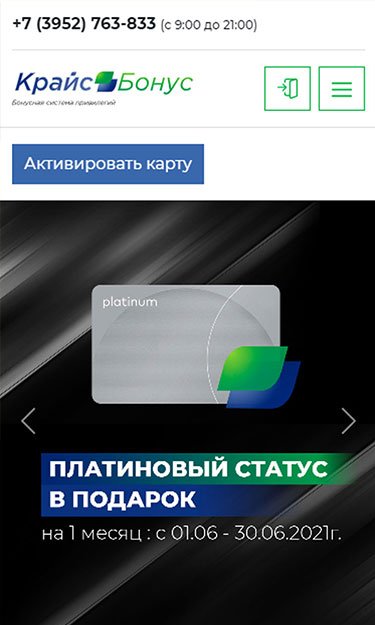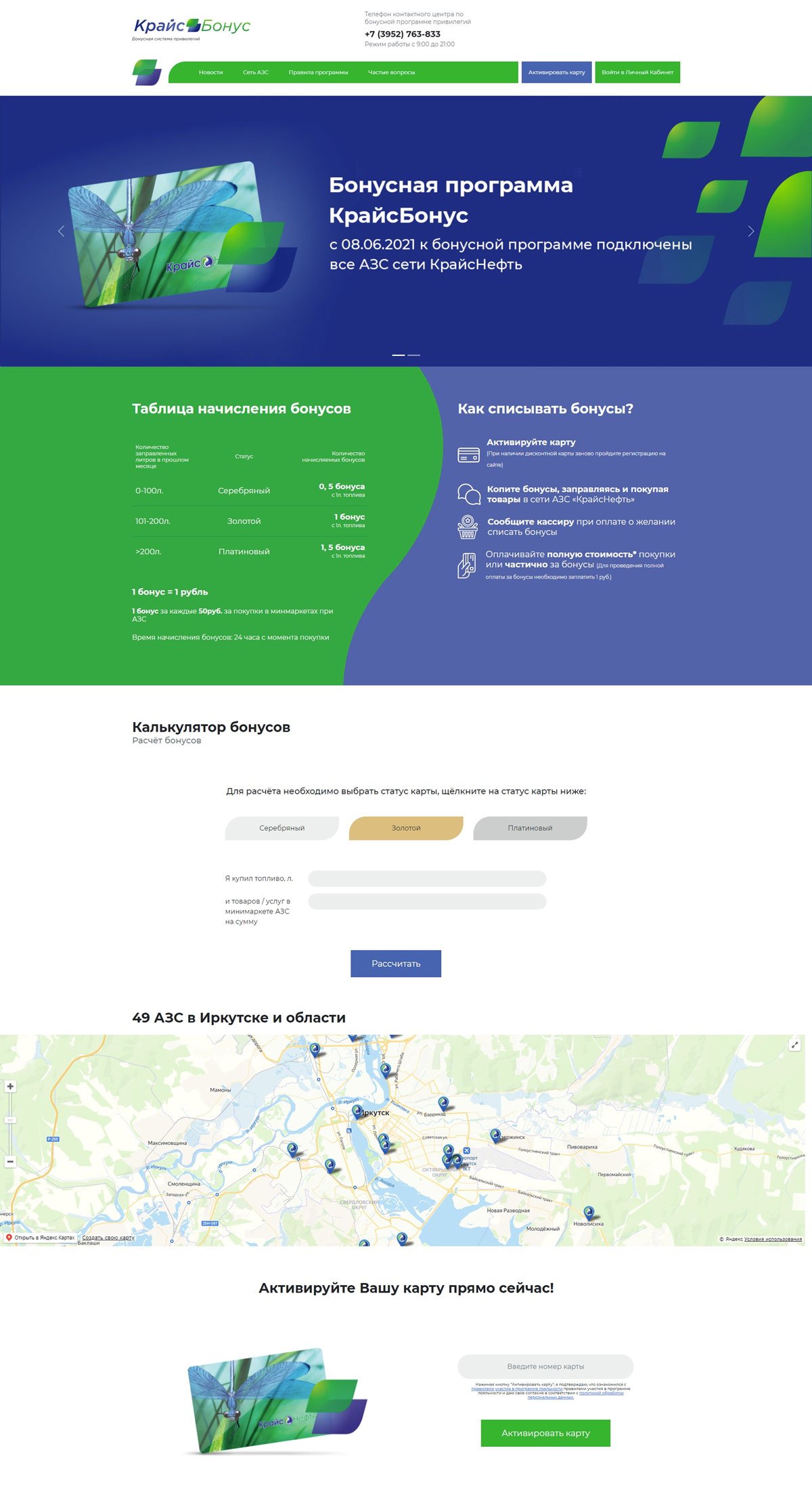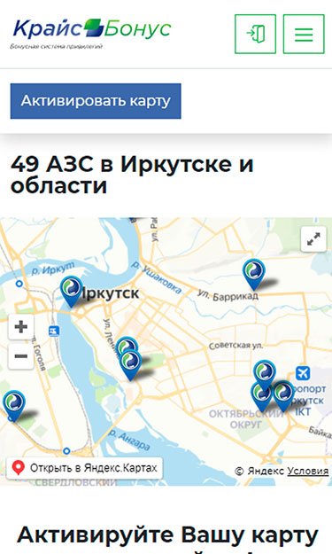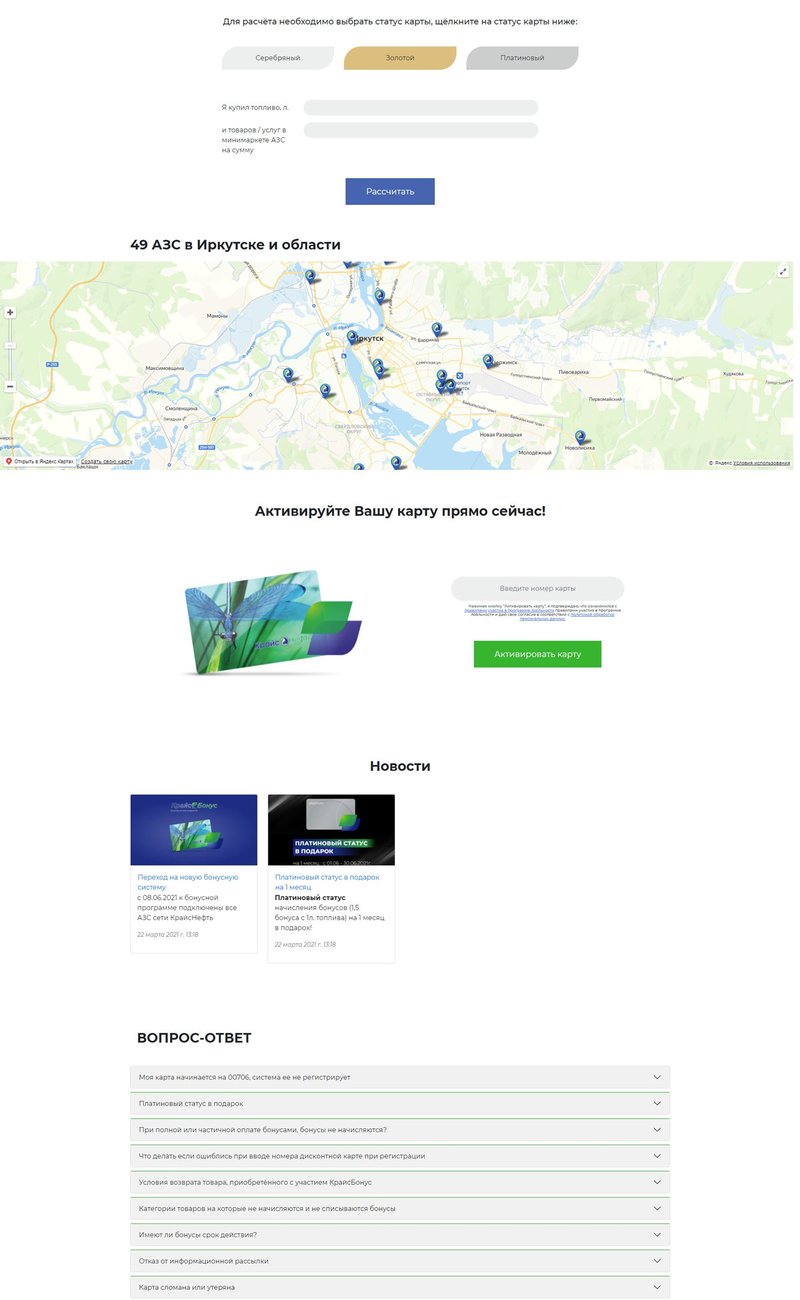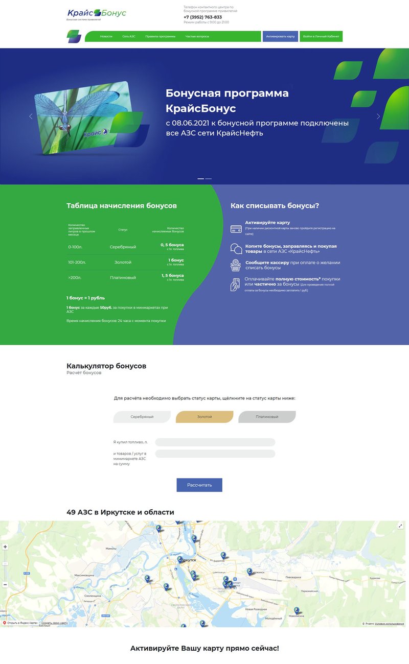 Сайт о бонусной системе привилегий "КрайсБонус" для сети автозаправочных станций "КрайсНефть".